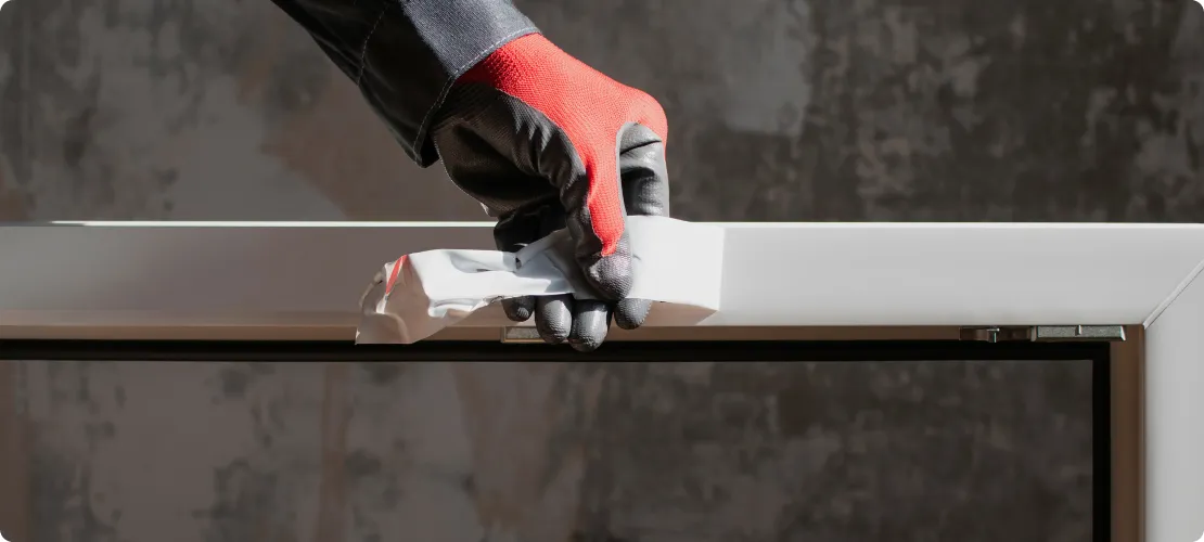 • Помойте ПВХ-окно с помощью любого мягкого раствора и протрите тряпкой.