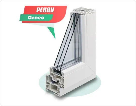 • Rehau Geneo. Система нового поколения, армированная по технологии RAU-FIPRO, за счет чего общий вес конструкции снижен на 40%. Также у профиля наивысший коэффициент теплопередачи — 1,05 и широкий выбор дизайнерских решений.