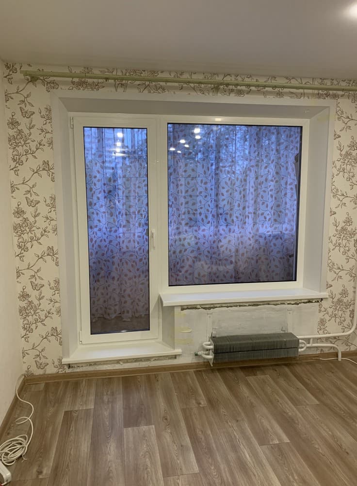 Выполненные работы: Демонтаж старых окон, Остекление профилем REHAU Delight, Фурнитура Siegenia Titan AF, Двухсторонняя ламинация, Стеклопакет с мультифункциональным стеклом, Вывоз мусора