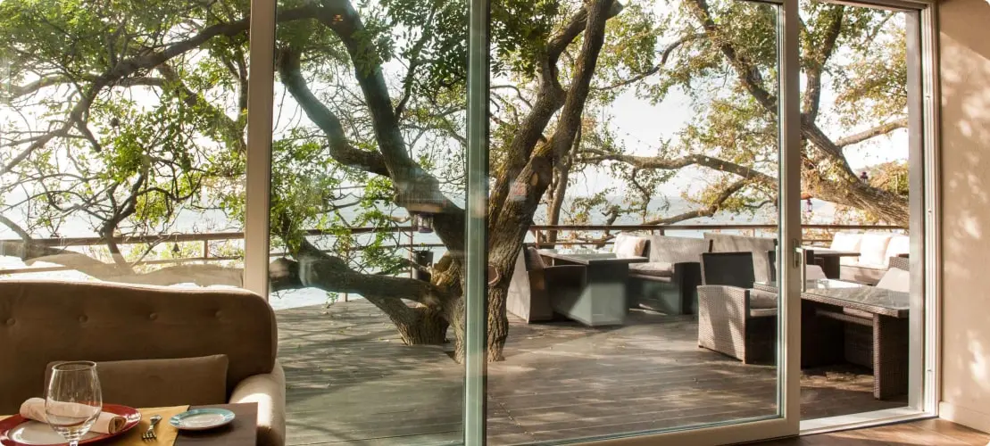 Рехау HST имеют высоту дверных створок до 2,7 метров, а также обладают высокой износостойкостью — выдерживают вес стеклопакета до 400 кг. Главный плюс: такое остекление отлично пропускает свет, что поможет визуально расширить пространство в вашем доме.